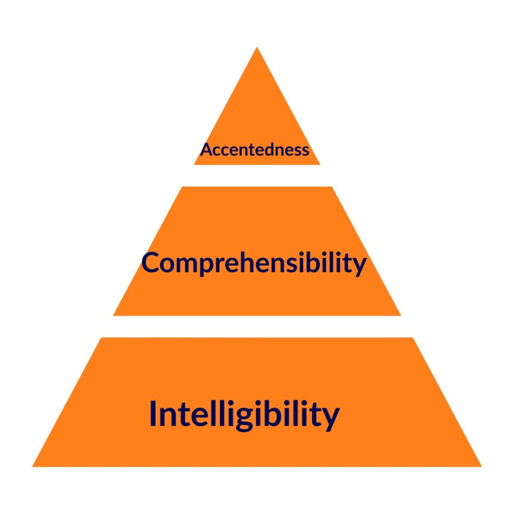 Instead of asking, ‘What can I do to remove my accent?’, start asking, ‘How can I be more understandable?’ We distinguish between three concepts: